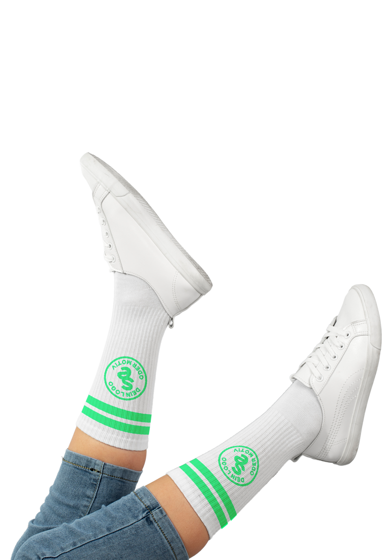 Der Klassiker unter allen Socken - die Tennissocke. Hier kannst du unter verschiedenen Streifenfarben auswählen und dein Logo auf dem gesamten Schaft platzieren. Bequem, gutaussehend und unser Bestseller.